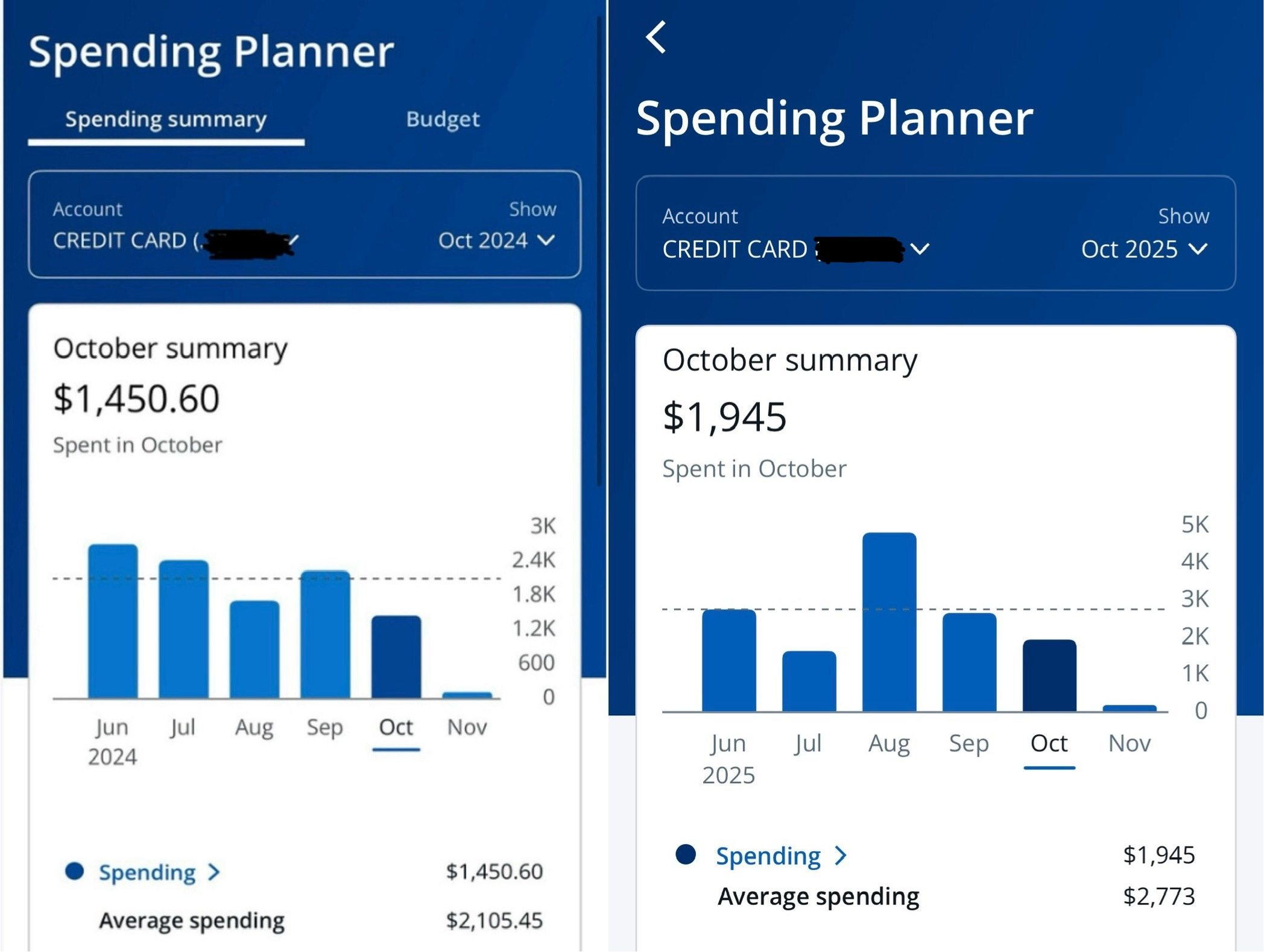 The numbers from October 2025 compared to October 2024 were revealing. I spent only about $500 more than I did last year. Without any unexpected expenses, my spending is steady, stabilizing around $2,000 each month.