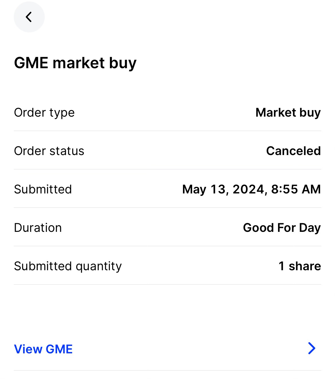 My confirmation email shows I placed my order at 8:55 a.m., with GameStop’s stock price at $33.29. But the stock halted several times that morning, and my order didn’t get filled immediately. That meant I no longer had control over my purchase price. Instead of $33 — already overvalued — my one share might have cost $40.