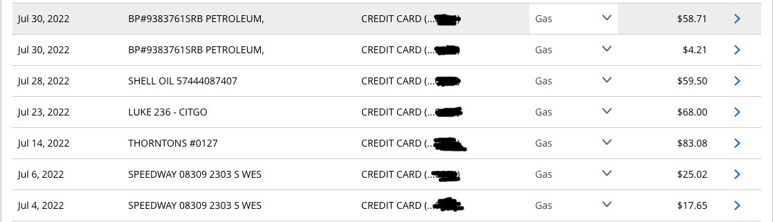 But a few gallons to get us down the road to the next Shell isn’t so bad. A look back on my gas purchases from July 2022 shows how haphazard I used to be. Whenever I needed gas, I just pulled over. I hoped for the best and got mad at the worst. I made two stops at Speedway, two at BPs, one at Thornton’s, one at Citgo and one at Shell. I didn’t save money at any of them.