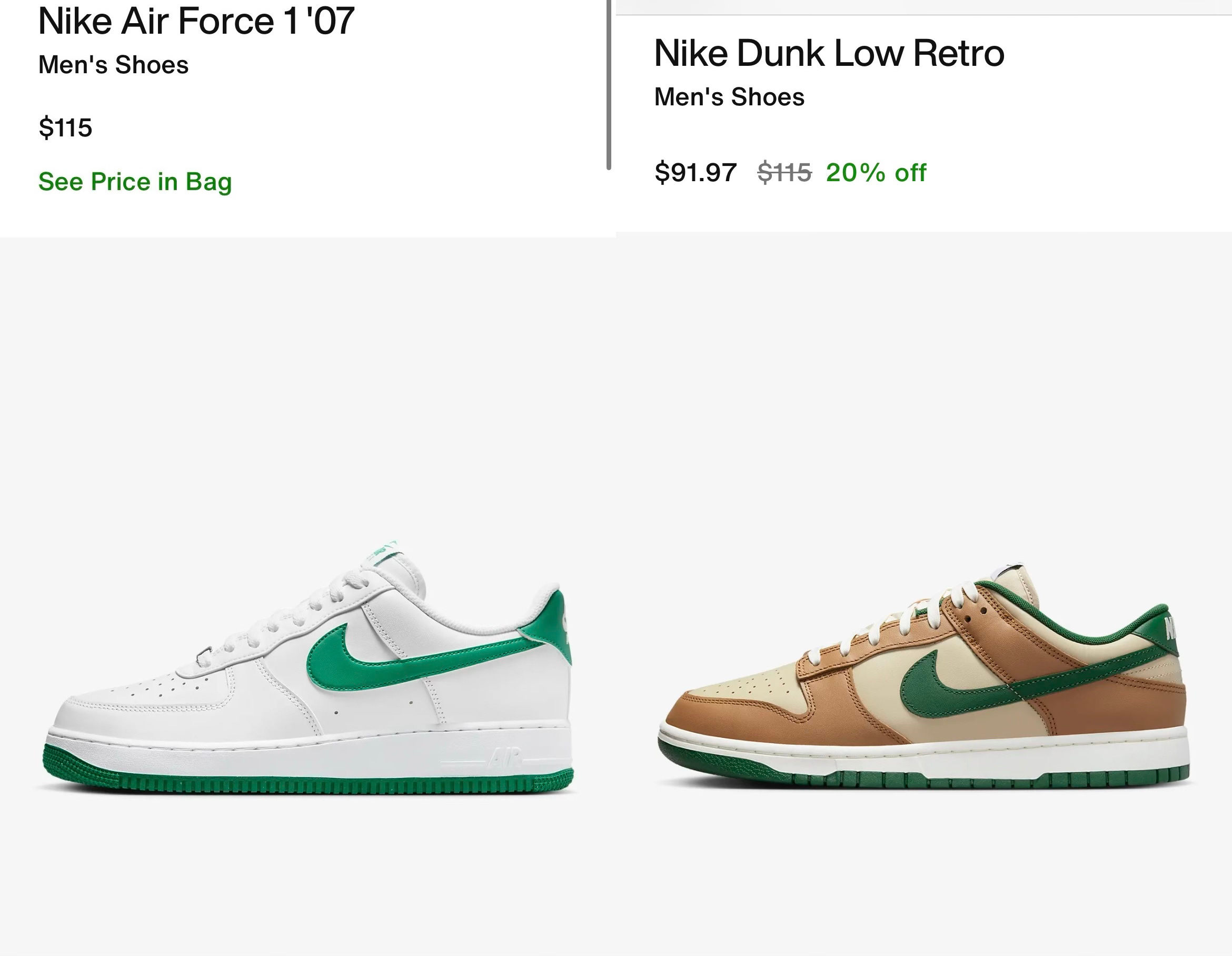 But when I checked on the Dunk Low Retros in the wee hours of the morning Friday, they too had been discounted by 20% from $115 to $92.