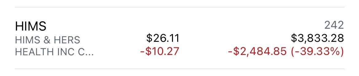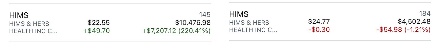 I’ve made a few dollars over the past two weeks buying put options on Hims in anticipation of the stock continuing to fall. Nowhere near the $7,200 unrealized profit I had when Hims hit its all-time high just below $73 last February.