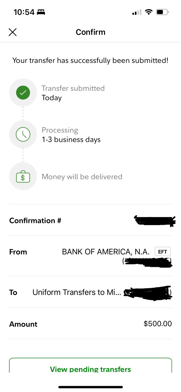 At 10:54 p.m., I transferred $500 from my checking account into my daughter Parker’s brokerage account.