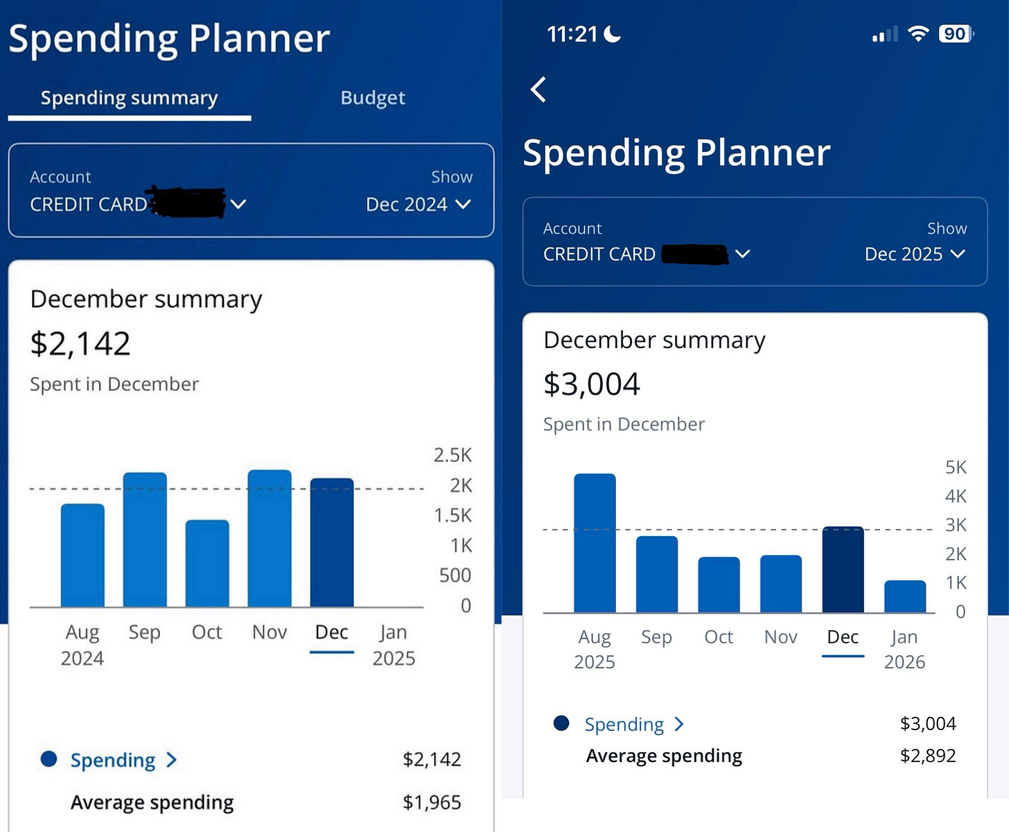 That $731.54 payment pushed my December spending past $3,000, up from just over $2,000 in December 2024.