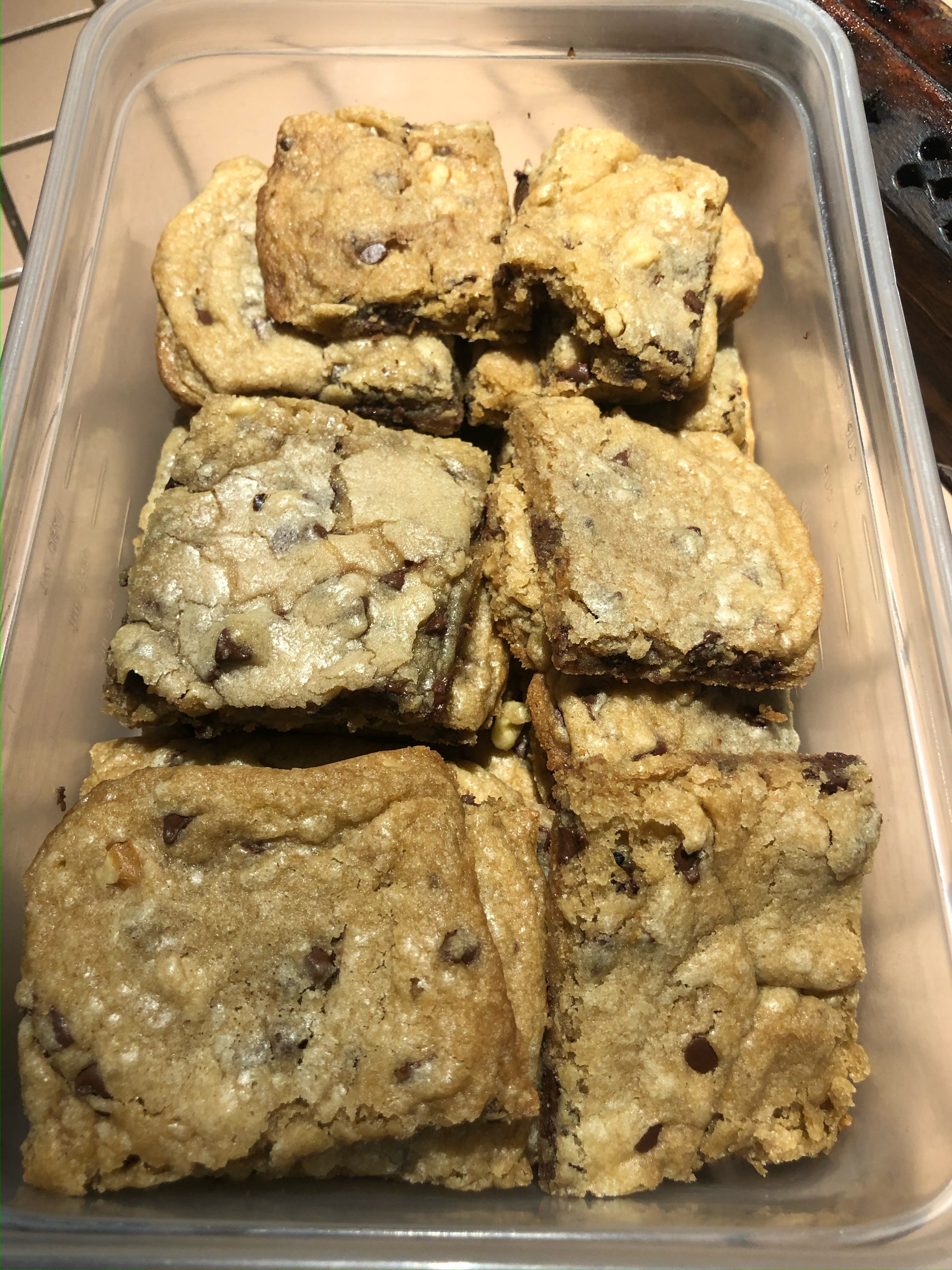 I’ll report back this summer on our lemonade stand that will now feature my delectable, homemade chocolate chip cookies. Fresh out of the oven, I’d put them up against even Tagalongs.