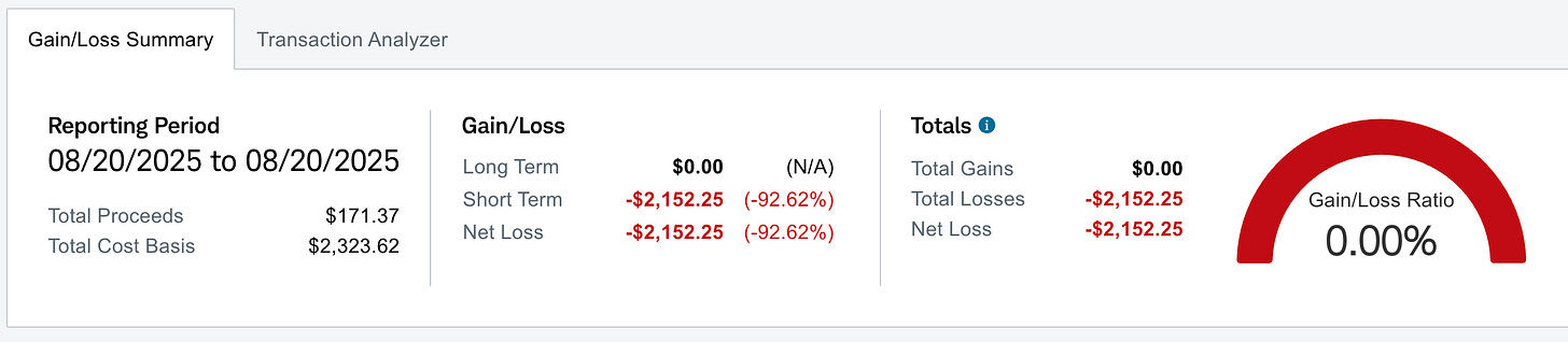 With my final four positions all down by at least 90 percent, I lit the match — closing out and walking away with $175 and a hard-earned education.