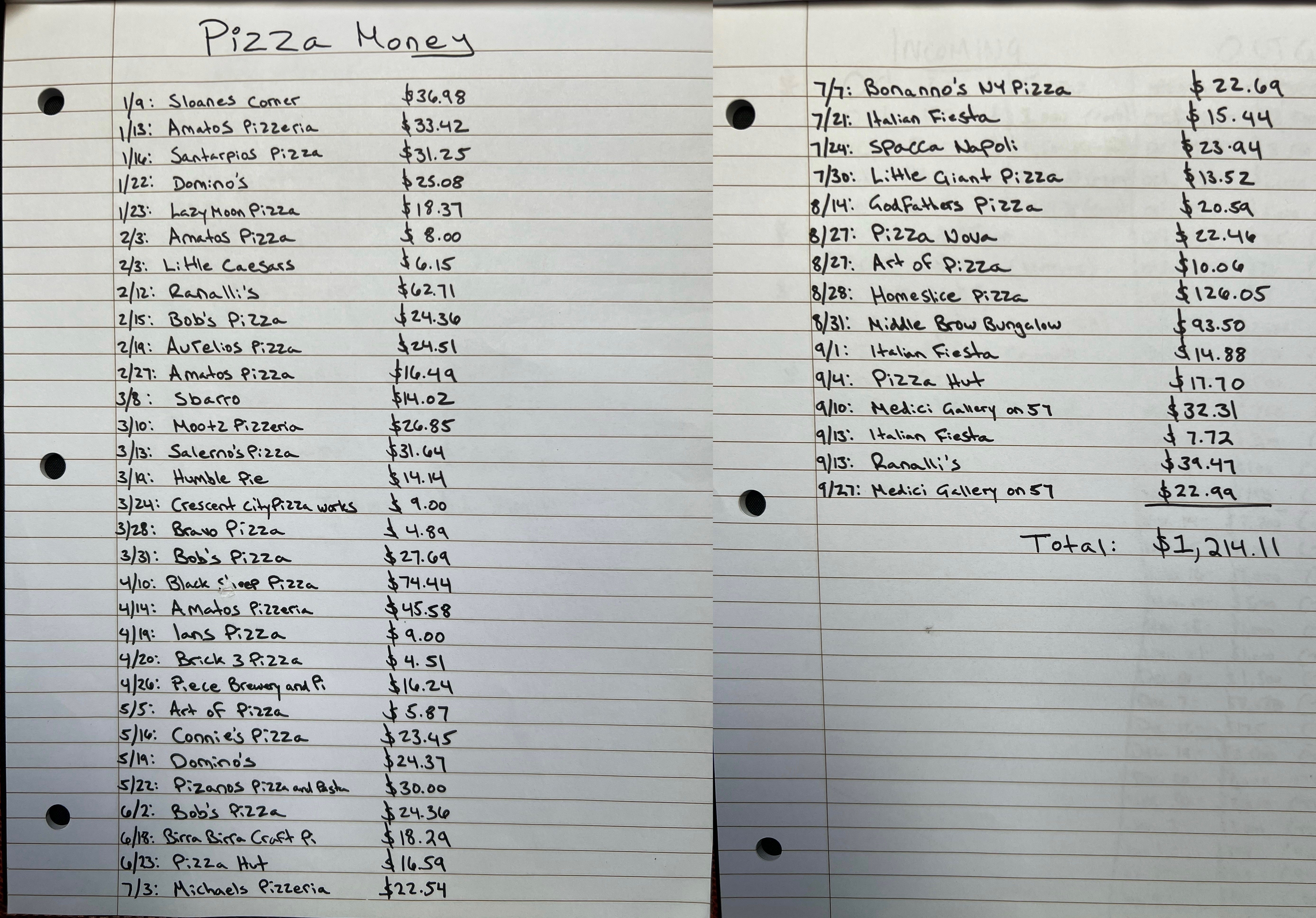 While gorging on pizza, I had no idea of the drain it was having on my fitness and my finances. Only when I hand wrote all of my pizza purchases from 2022 did I begin to realize the damage I was inflicting on myself.