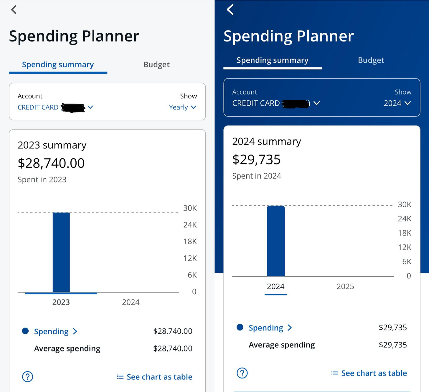 For example, I learned from the spending planner that I charged only $995 more in 2024 than I did in 2023. My consistency with my spending was noticeable in several months last year. Thanks to tracking, I’m reducing my spending and building year-over-year stability.