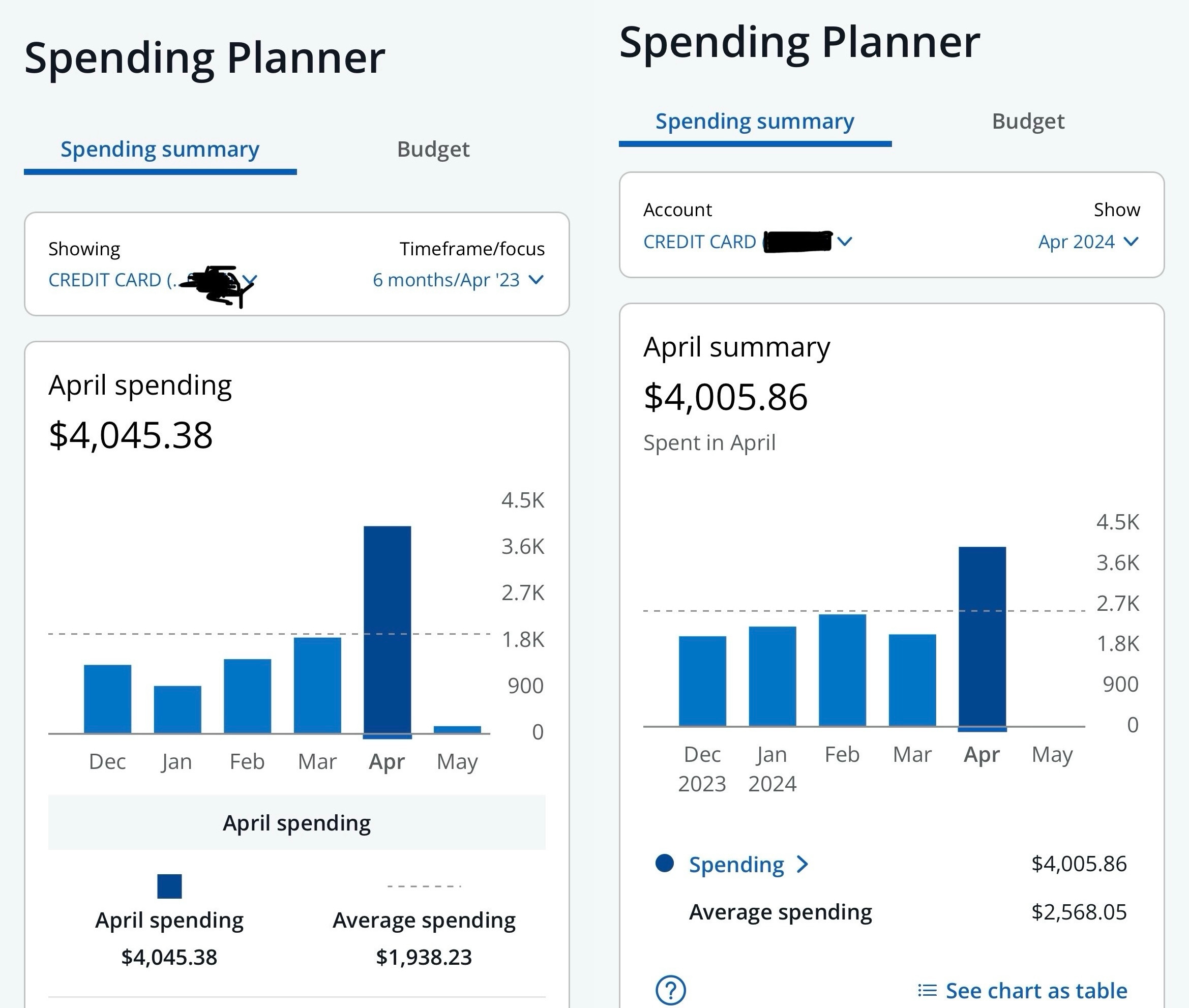 From April 11-30, I traveled to Detroit, Washington, New York, Miami, Oklahoma City and New Orleans for work trips. Those six trips put $2,970.77 on my personal credit card, which explains my annual spike in spending in April.